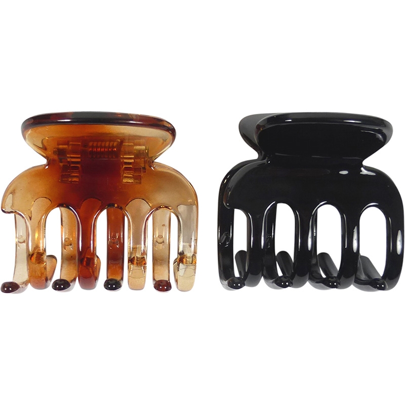 Deze haarklem set in zwart en bruin combineert functionaliteit met een tijdloze uitstraling. De compacte klemmen zijn perfect voor het vastzetten van plukjes haar of het creëren van een subtiele look.