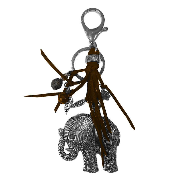Aan de hanger zitten o.a. een suède kwastje en een metalen olifant. De hanger is leuk als sleutelhanger of tashanger.