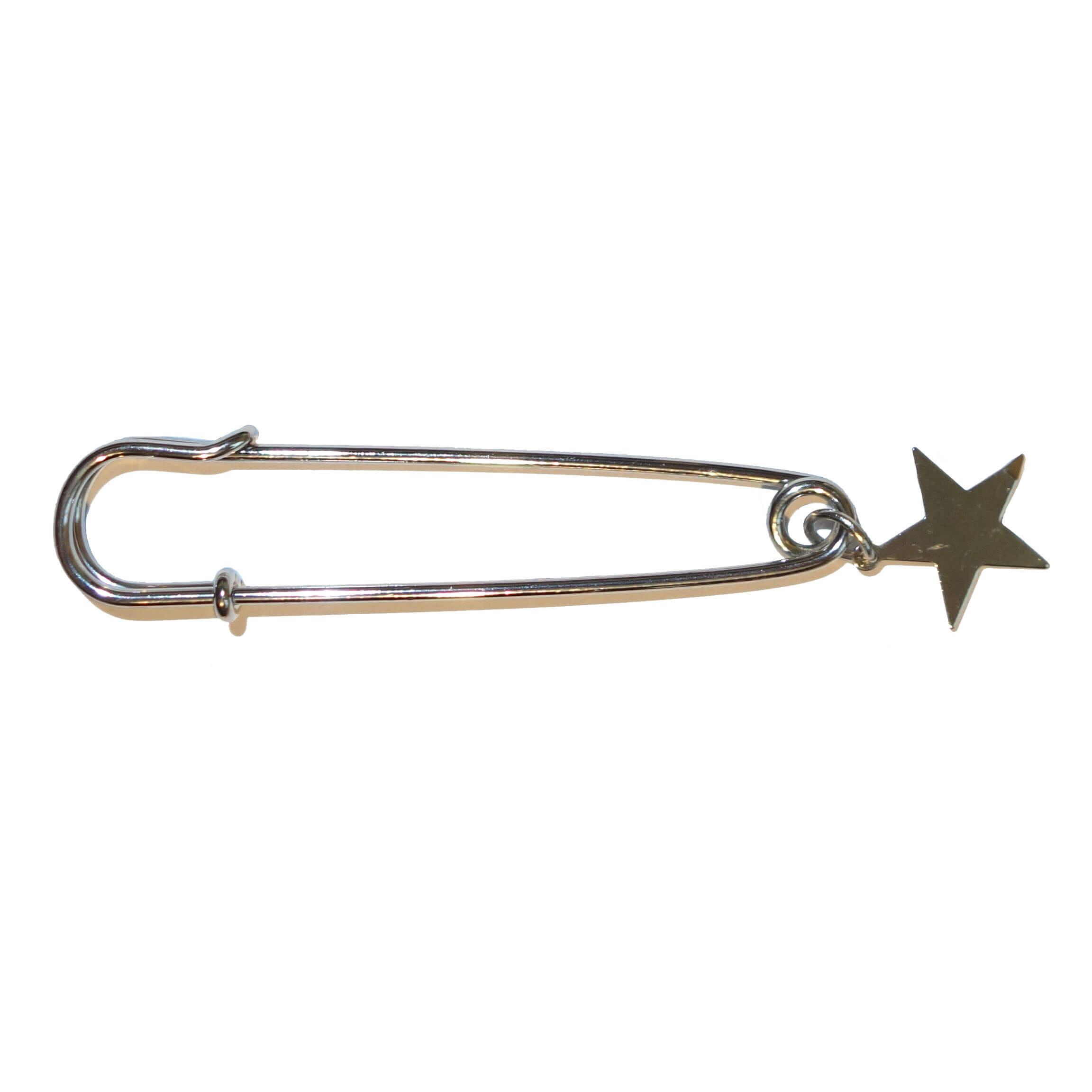 Mooie grote veiligheidsspeld goud met ster, handig voor een omslagsjaal / poncho. De lengte van de veiligheidsspeld is 7 cm. Ook te gebruiken om een vest mee te sluiten.