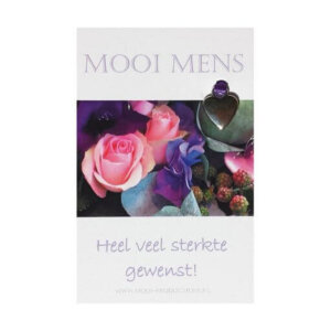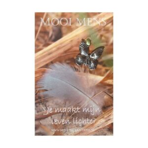 Wilt u een goede vriend of zomaar iemand verassen met een Mooi Mens wenskaartje? De collectie Mooi Mens kaartjes is er om iemand eens te bedanken, blij te maken, te ondersteunen, in het zonnetje te zetten of een hart onder de riem te steken om de simpele reden dat ieder mens mooi is. Het kaartje van Mooi Mens is gemaakt van gerecycled digi groen papier en voorzien van eigen fotomateriaal. Aan het kaartje hangt een bedel met een bijzondere tekst.