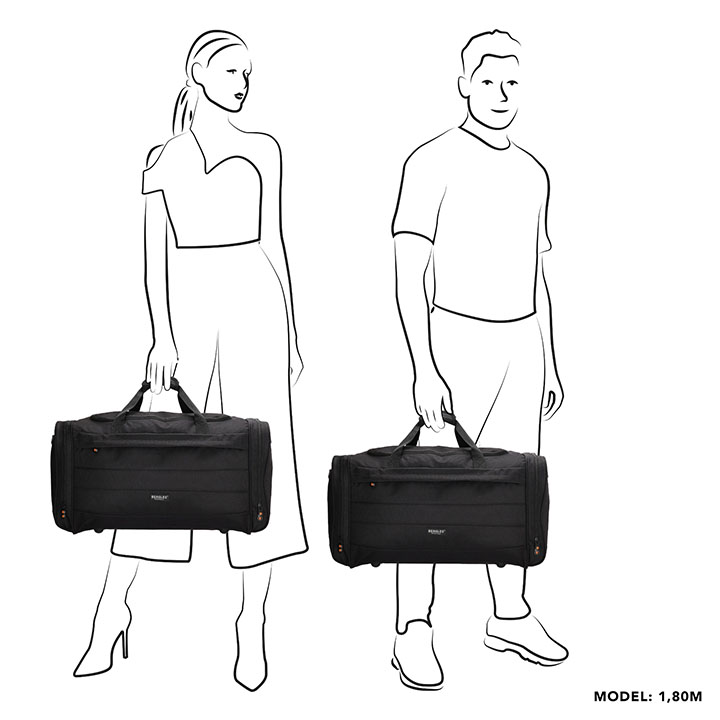 De tas heeft een ruim hoofdvak, 2 zijvakken en voorvak met ritssluiting. U kunt de tas dragen met de 2 handvatten of met de lange verstelbare en afneembare schouderband. De afmeting van de tas is 61 x 27 x 35 cm.