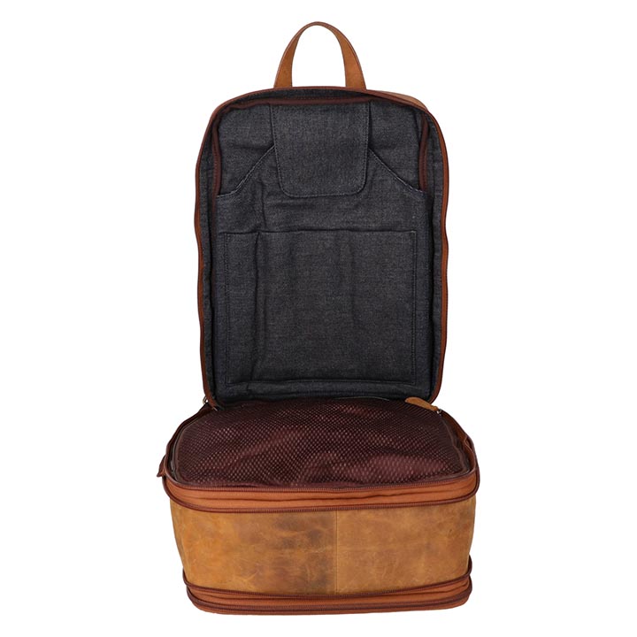Mooie echt leren underseater rugzak van The Rat Pack by Orange Fire. De tas is gemaakt van hoogwaardige kwaliteit leer, het leer is stevig en heeft een vintage look. De rugzak voldoet aan de IATA richtlijn, dus u kunt de rugzak gebruiken als handbagage. Door het compacte formaat van deze underseater rugzak, mag je de rugzak onder de stoel in het vliegtuig plaatsen. De schouderbanden van de rugzak zijn verstelbaar, doordat de schouderbanden verstelbaar zijn kunt u de tas altijd op de gewenste lengte dragen.