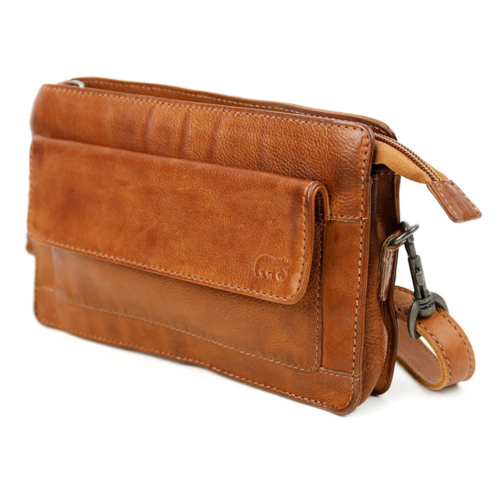 De tas heeft een lange afneembare schouderband die verstelbaar is, doordat de schouderband verstelbaar is kan je de tas altijd op de gewenste lengte dragen. Ook heeft de tas een afneembaar polsbandje, hierdoor kan de tas gedragen worden als polstas. Deze prachtige leren tas komt uit de Calisto-Pelle serie van Bear Design. Voor deze serie worden alleen de mooiste huiden gebruikt. Het leer is zacht, soepel en prachtig gekleurd. Het leer heeft een unieke waxbehandeling gehad, hierdoor voelt het leer heerlijk soepel aan. De afmeting van de tas is 24 x 15 x 4 cm.