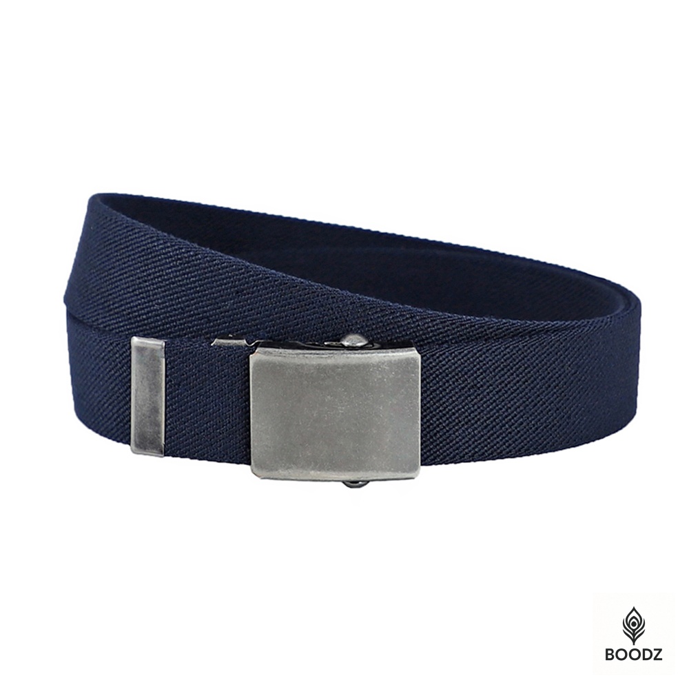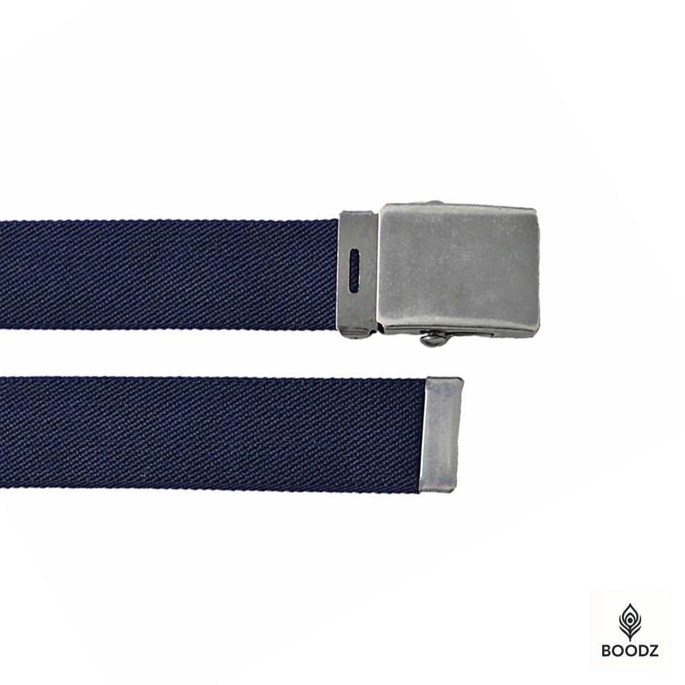 Canvas elastische Boodz riem. De riem is gemaakt van canvas met een lichte elasticiteit, waardoor deze riem een prettig draagcomfort heeft. De riem heeft een breedte van 3.5 cm. De luxe metalen schuifgesp geeft de riem een moderne en nette uitstraling.