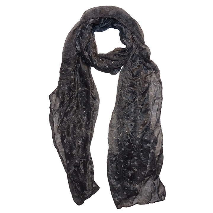 Langwerpige sjaal van Boodz met een fonkelende sterrenprint en glitters. Maakt elke outfit direct af. 100% polyester, 50 x 150 cm.