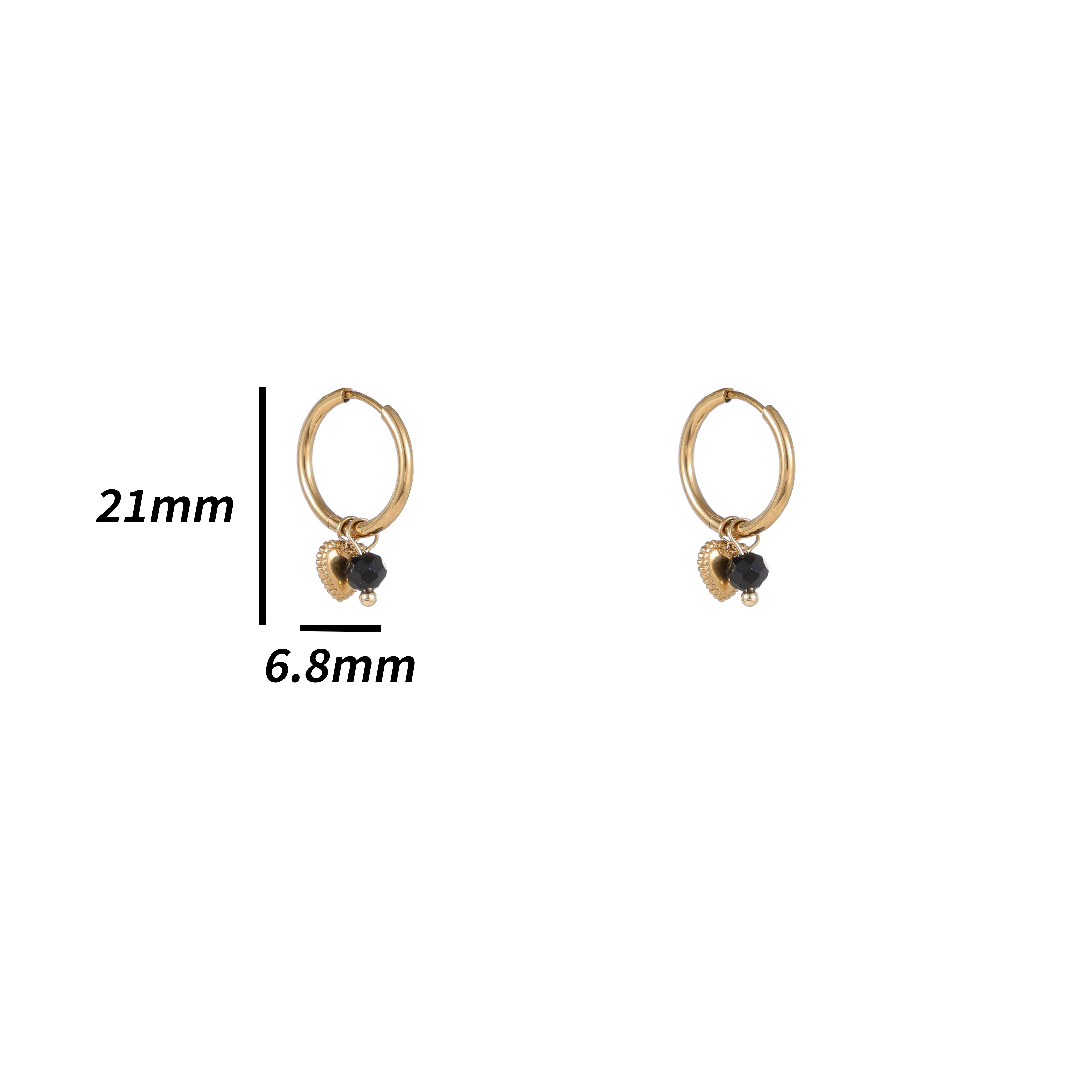 Mooie oorringen van Day&Eve by Go Dutch Label met daaraan een hartje en een zwarte kraal. De oorbellen zijn gemaakt van edelstaal. Doordat de oorbellen gemaakt zijn van edelstaal blijven ze lang mooi. De oorbellen hebben een lengte van 21 mm.