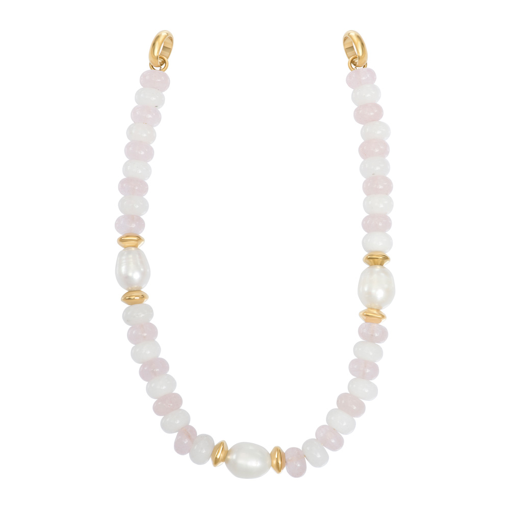 iXXXi Connect Ketting Ibiza Sun met witte en roze steentjes en parel. Stainless steel, nikkelvrij en perfect om te mix & matchen binnen de Connect collectie.
