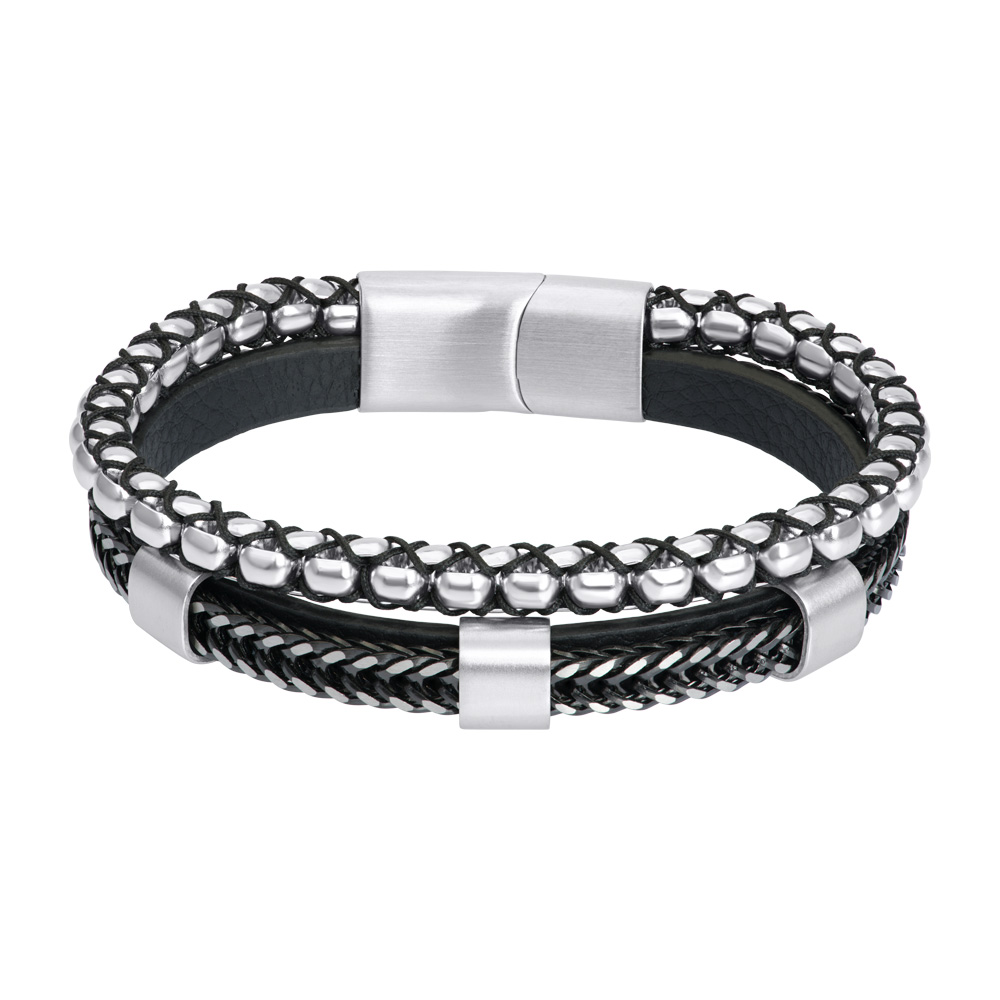 Deze combinatie van leer en staal geeft de armband een krachtige en mannelijke look.De sluiting is gemaakt van hoogwaardig stainless steel, is nikkelvrij en hypo-allergeen.