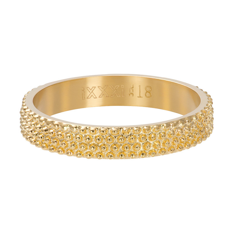 De iXXXi vulring Caviar is een speelse en opvallende ring waarmee je jouw ringcombinatie een rijke en unieke uitstraling geeft. Het design bestaat uit meerdere rijen kleine bolletjes, wat zorgt voor een bijzonder en levendig effect.