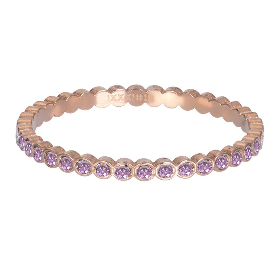 Mooie iXXXi vulring met rondom paarskleurige zirconia steentjes. De ring heeft een breedte van 2 mm. De ring is gemaakt van edelstaal.