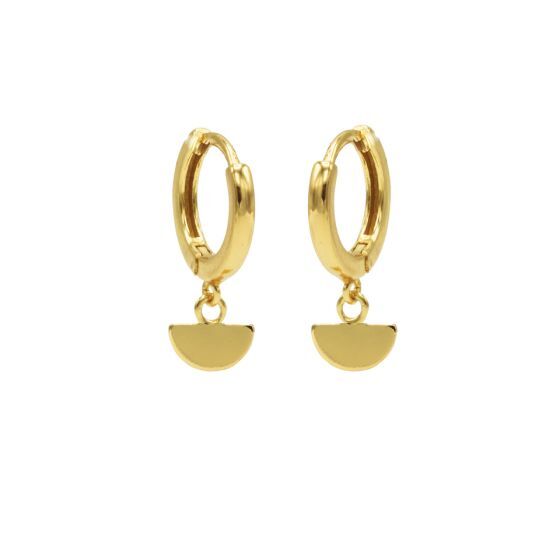 Mooie oorringen met halve discs van Karma Jewelry. De oorringen openen en sluiten gemakkelijk met de kliksluiting. De oorringen zijn gemaakt van 925 sterling zilver met gouden plating.