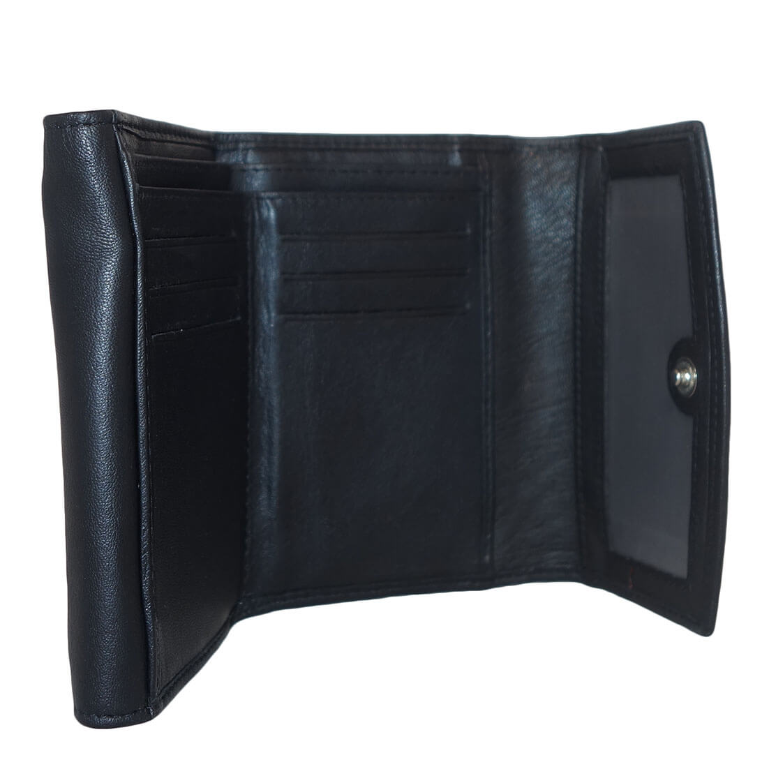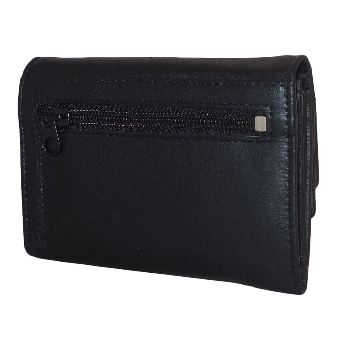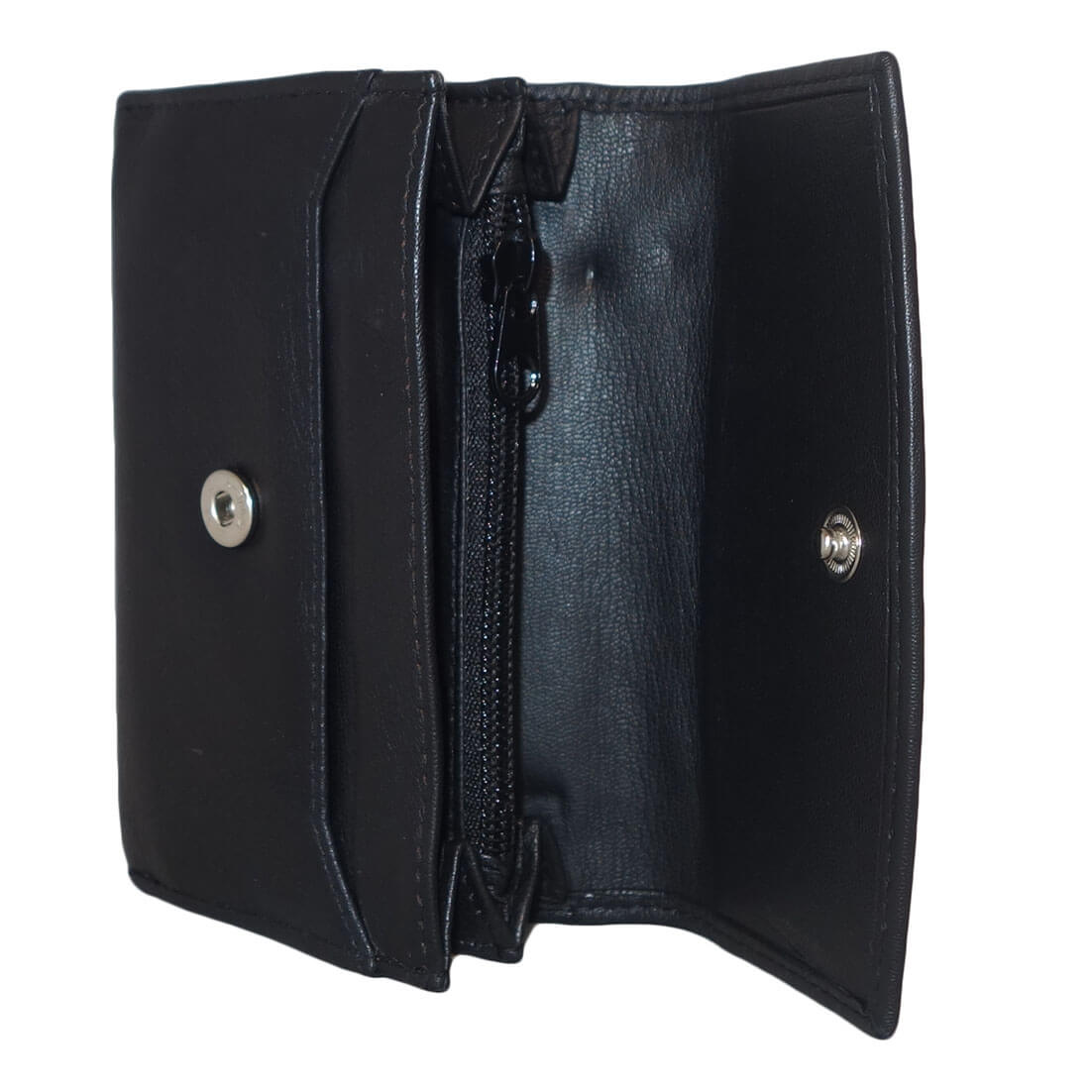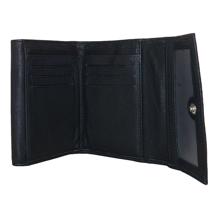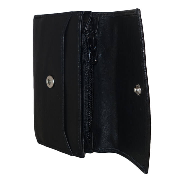 Mooie dames portemonnee van Leather Design. De portemonnee is gemaakt van soepel echt leer. Aan de binnenzijde beschikt de portemonnee over 2 papiergeldvakken, 6 creditcardvakjes, een fotovak, 2 steekvakken en een ritsvakje. Aan de achterzijde zit tevens een ritsvakje. De portemonnee wordt afgesloten door middel van 2 drukknoopsluitingen.