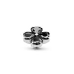 Het Melano Twisted Heart Clover steentje is een symbool van liefde en geluk. Vier hartvormige zirkonia’s komen samen in de vorm van een klavertjevier. De steen heeft een diameter van 10 mm en is gemaakt van edelstaal.