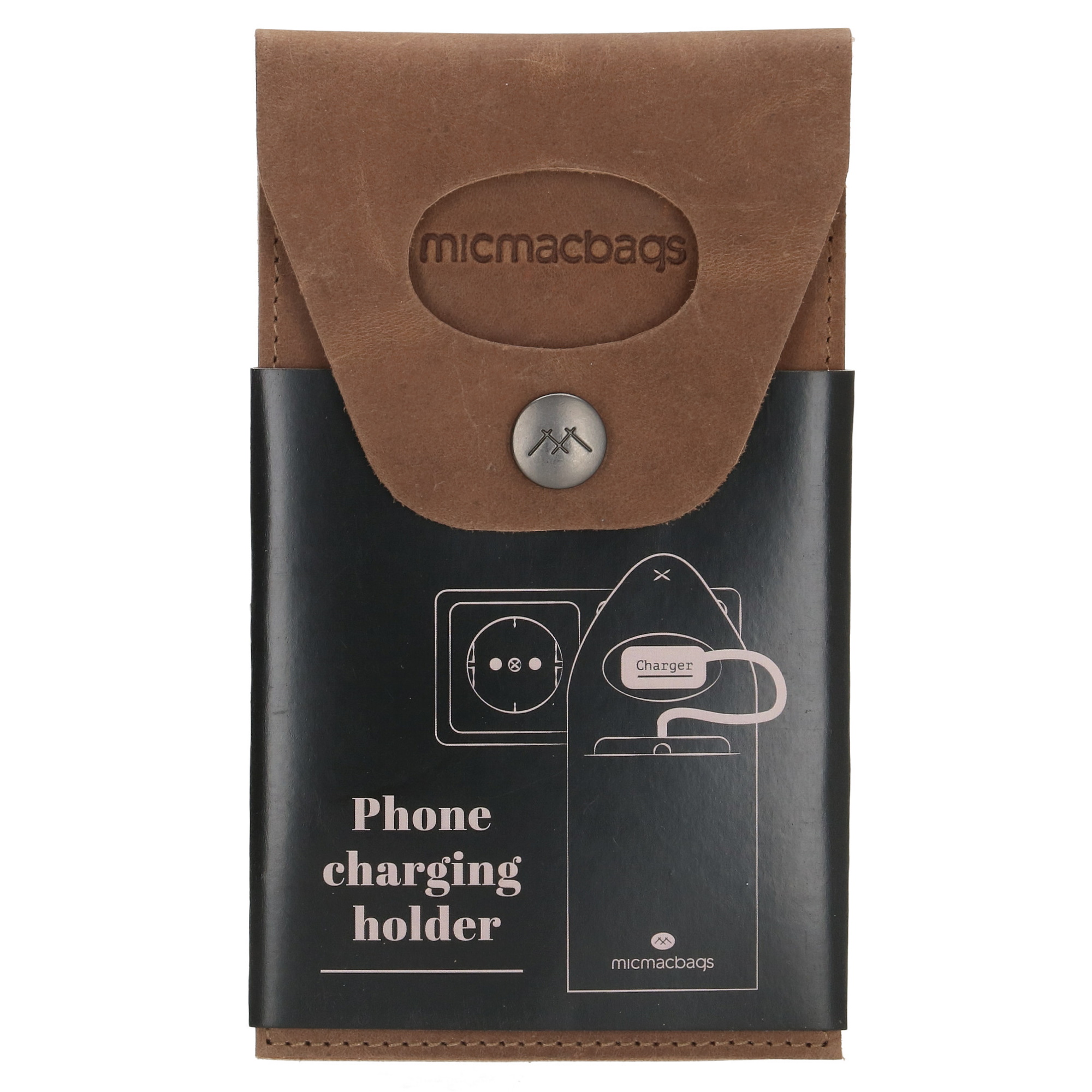 Micmacbags Illinois Leren Telefoon Hoesje voor Opladen Bruin