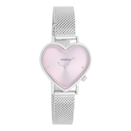 OOZOO Timepieces Horloge Hart Zilver/Roze | C11414