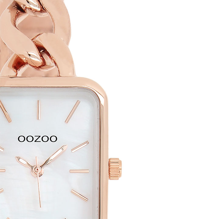 OOZOO Horloge met Schakelarmband Rosé Goud/Wit | C11134