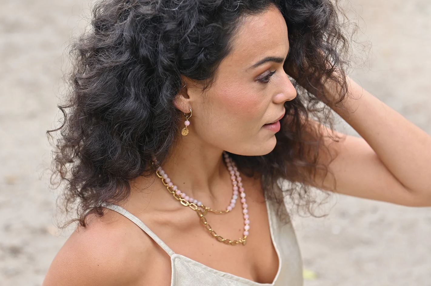 De oorbel is voorzien van een edelsteen kraal van circa 6 mm, die samen met de munt hanger zorgt voor een mooie balans tussen minimalistisch en opvallend. Hierdoor zijn de oorbellen geschikt voor zowel dagelijks gebruik als een meer geklede gelegenheid.