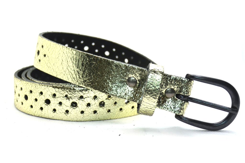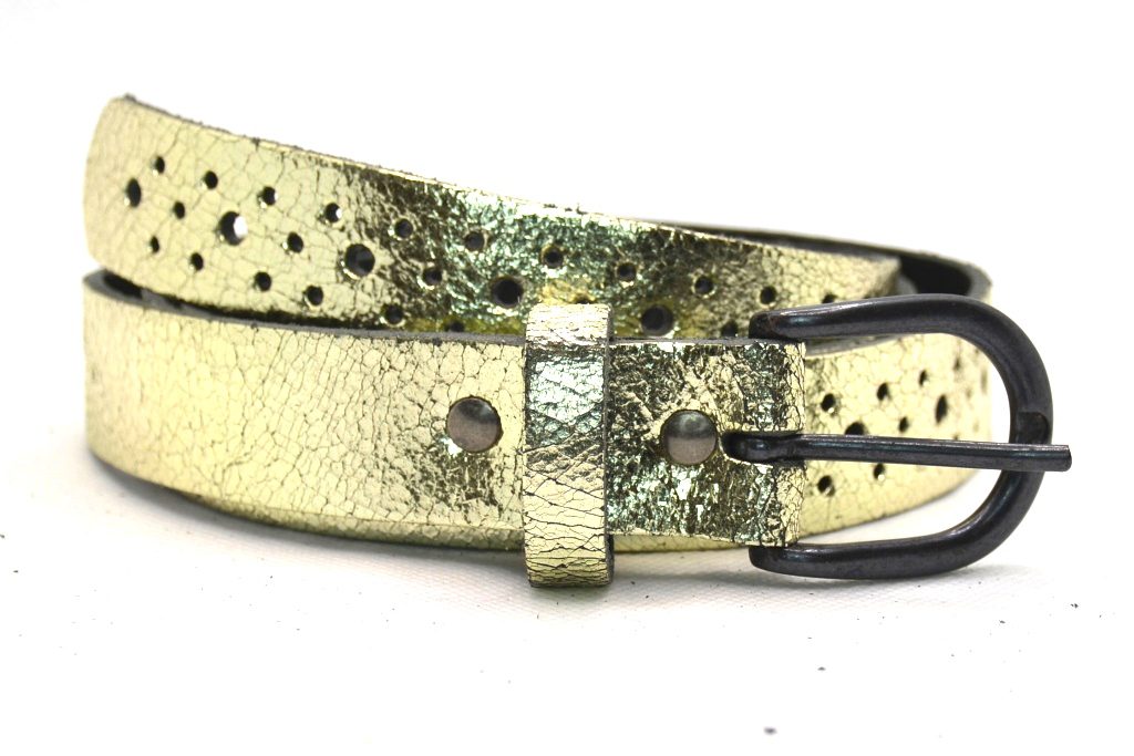 Timbelt Leren Gaatjes Riem Goud