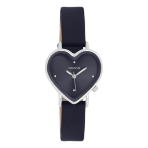 OOZOO Timepieces Horloge Hart Zilver/ Donker Blauw | C11449