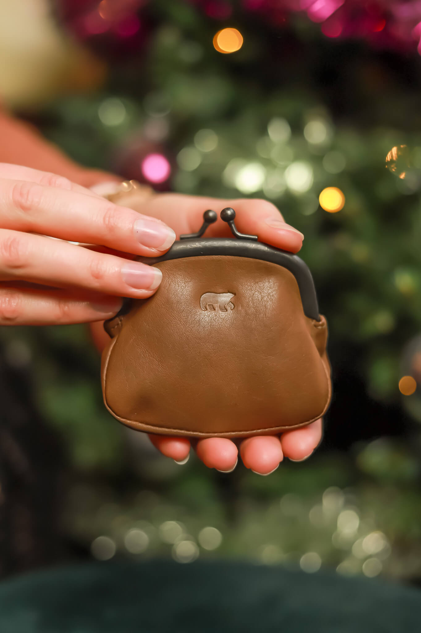 • Bear design logo verwerkt in het leer