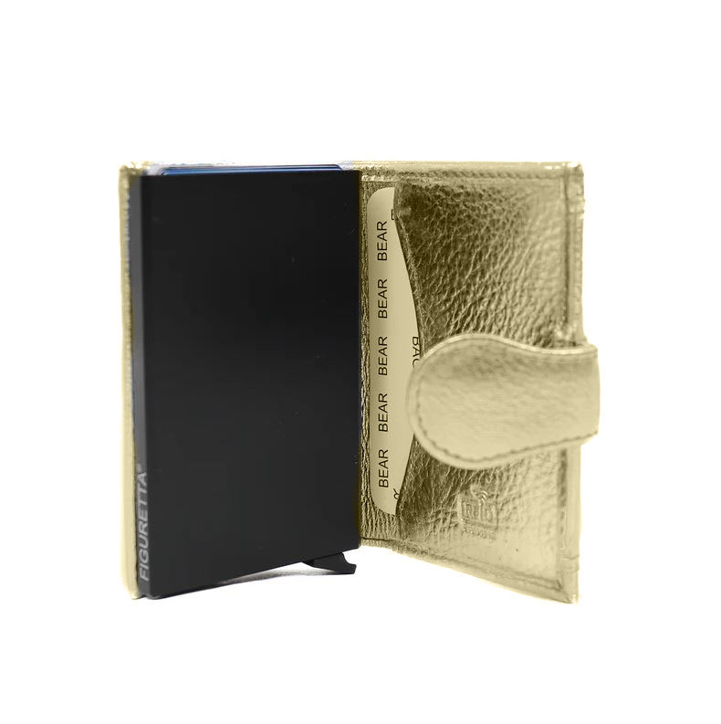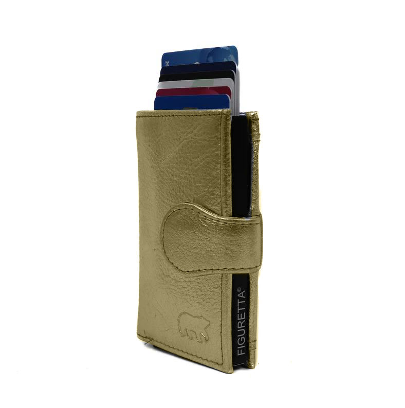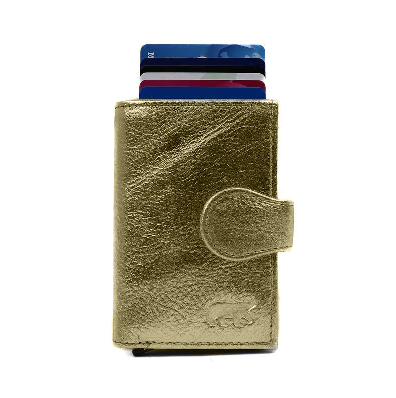 In de portemonnee zit een RVS creditcardhouder waarmee u uw 6 belangrijkste pasjes trapsgewijs uit de protector laten komen. Uw pasjes blijven beschermt door het robuuste RVS en de RFID protectie. Door de RFID protectie kunnen uw pasjes (bijvoorbeeld de OV-chipkaart) niet uitgelezen worden. Ook beschikt de portemonnee over 2 creditcardvakjes, een ritsvak en een vak voor uw briefgeld. De afmeting van de portemonnee is 7 x 10 x 2 cm.
