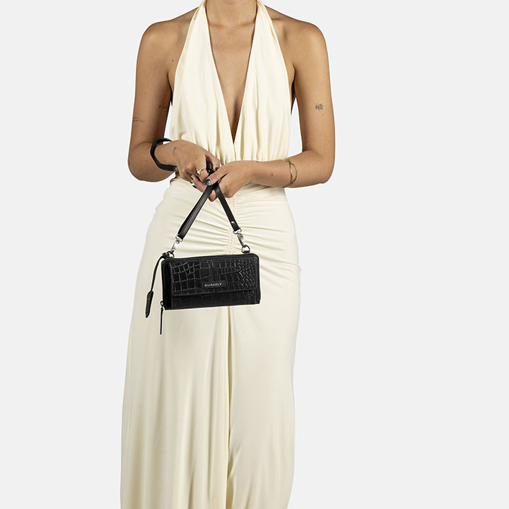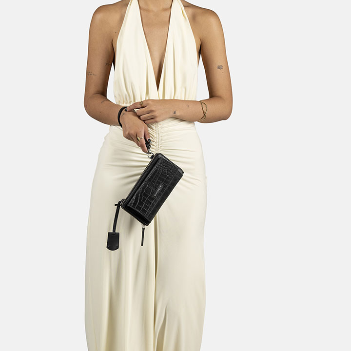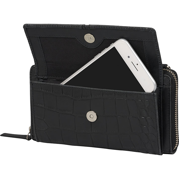 De wallet heeft een ruim ritsvak. Op de voorzijde zit een telefoonvak (18 x 9.5 cm) met magneetsluiting. In het ritsvak zitten 12 creditcardvakjes, een binnenvak met ritssluiting, 2 steekvakken en 4 organisatievakken. Ook heeft de wallet een achtervak met ritssluiting. Deze wallet heeft RFID protectie, door de RFID protectie kunnen uw pasjes niet uitgelezen worden. Dit is tegenwoordig onmisbaar nu contactloos betalen een belangrijk onderdeel is van onze betaalmethode. De schouderband is verstelbaar en afneembaar. Het Burkely logo is mooi verwerkt in het leer. De afmeting van de portemonnee is 20 x 10.5 x 4 cm.