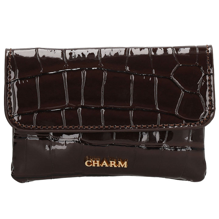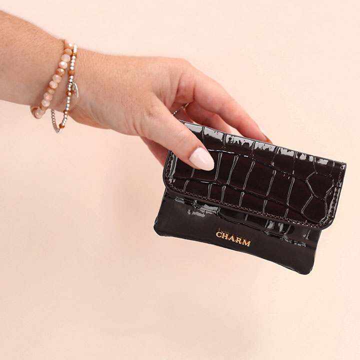 Charm London Knightsbridge etui portemonnee – elegante portemonnee in croco laklook met twee vakken, magneetsluiting en ritsvak. Compact, stijlvol en perfect voor dagelijks gebruik.