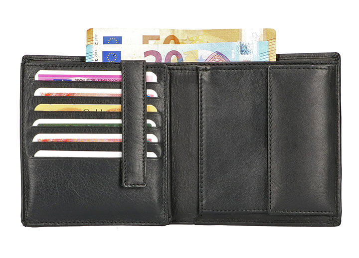 Mooie compacte portefeuille / portemonnee van Leather Design. Het handige aan deze portefeuille is dat de portefeuille genoeg ruimte heeft voor o.a. papiergeld, munten en pasjes. De portefeuille beschikt over 18 creditcardvakjes, 2 papiergeldvakken, 2 fotovakjes, een muntgeldvak en 2 steekvakken. De portefeuille is gemaakt van rundleder, het leer heeft een mooie uitstraling en voelt goed aan.