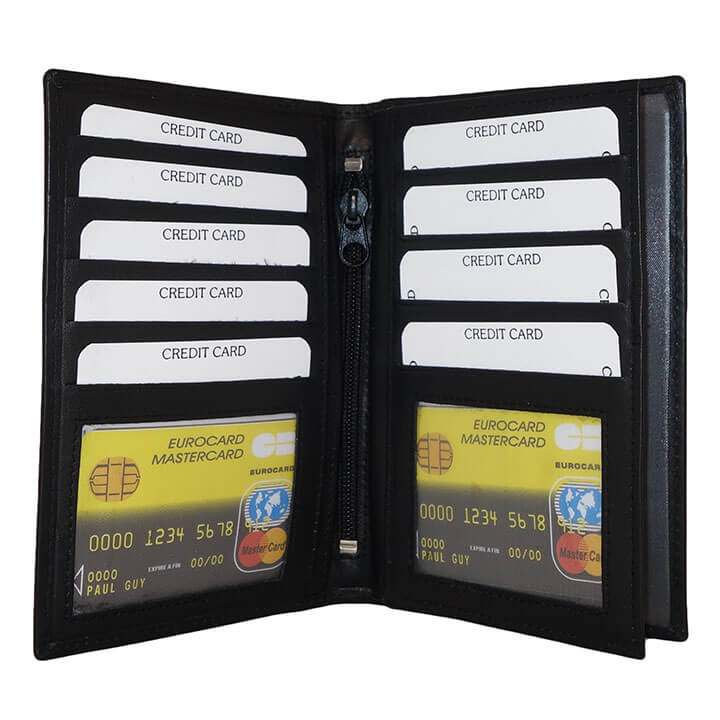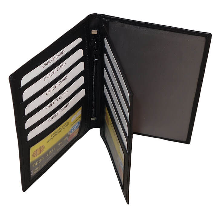 Mooie paspoort portefeuille van Leather Design. Het handige aan deze portefeuille is dat naast ruimte voor uw paspoort de portefeuille ook genoeg ruimte heeft voor papiergeld, muntgeld en pasjes. De portefeuille beschikt over 12 creditcardvakjes, 3 steekvakken, een ritsvak voor bijvoorbeeld muntgeld, papiergeldvak en 3 doorzichtige steekvakken handig voor bijvoorbeeld uw paspoort, ID-kaart of pasfoto's. De portefeuille is gemaakt van rundleder, het leer heeft een mooie uitstraling en voelt goed aan.