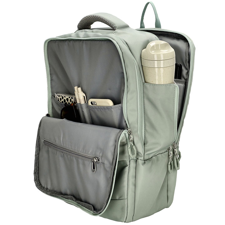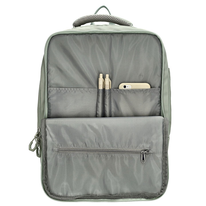 - Handige interne indeling met een gewatteerd laptopvak 15’’, 2 penvakjes, een binnenvak met ritssluiting en 3 steekvakken