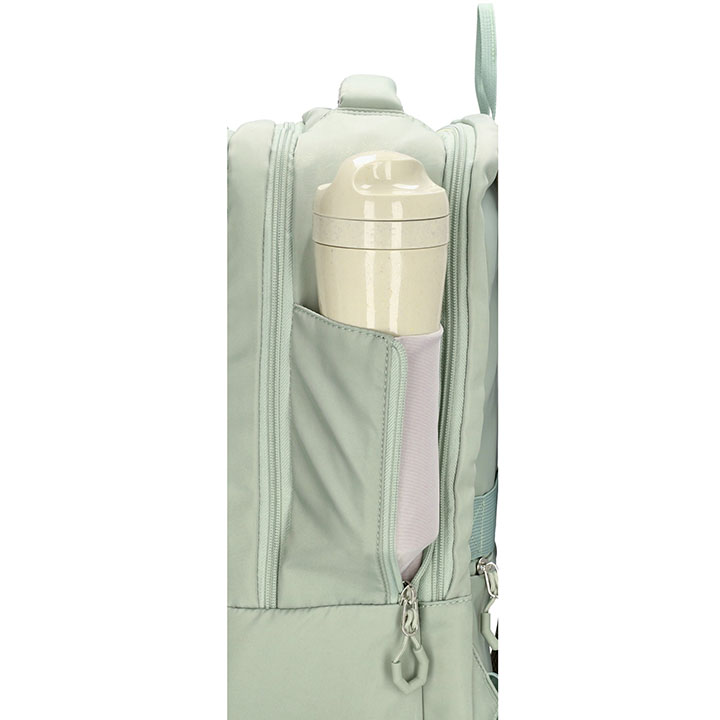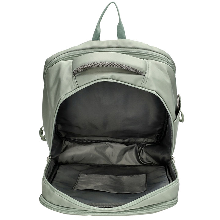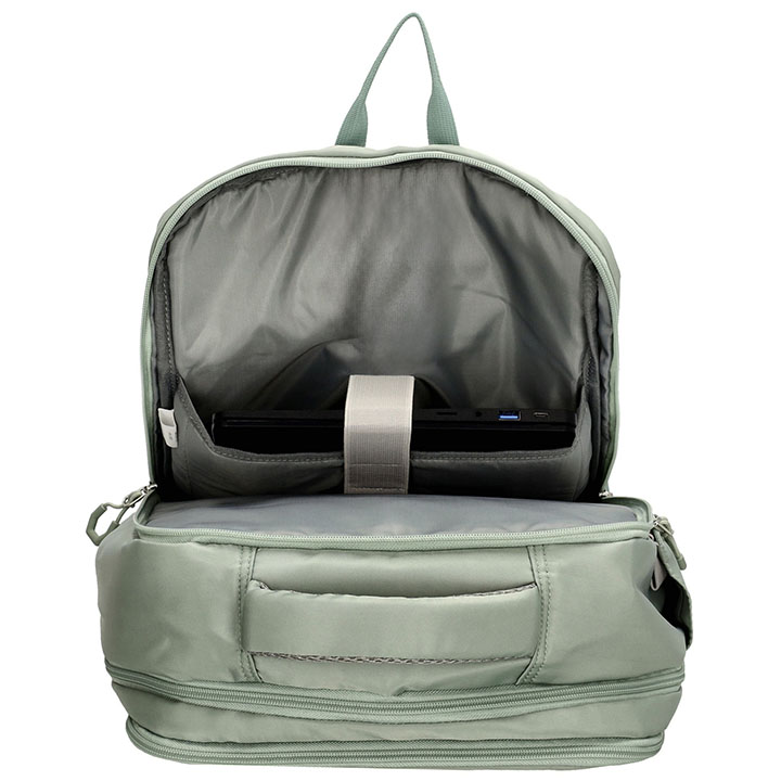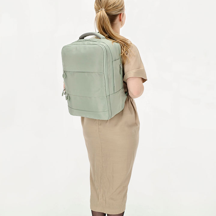 De tas kunt u dragen met het handvat op de bovenzijde of met de verstelbare schouderbanden. De rug en schouderbanden zijn gewatteerd, hierdoor draagt de rugzak comfortabel. Op de achterzijde heeft de rugzak een smart-sleeve, hiermee kunt u de rugzak bevestigen aan de trekstang van een trolley. De afmeting van de tas is 30 x 42 x 14 cm.