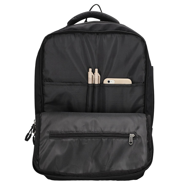 - Handige interne indeling met een gewatteerd laptopvak 15’’, 2 penvakjes, een binnenvak met ritssluiting en 3 steekvakken