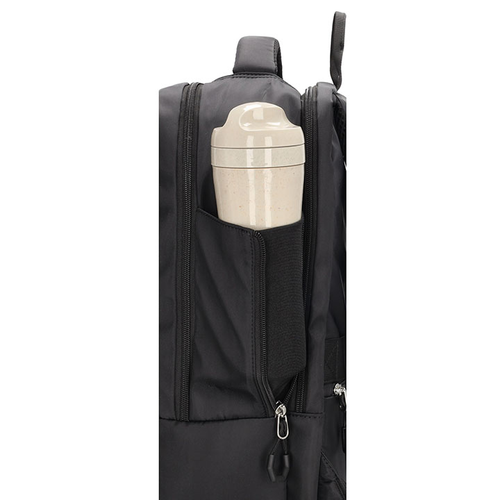 De tas kunt u dragen met het handvat op de bovenzijde of met de verstelbare schouderbanden. De rug en schouderbanden zijn gewatteerd, hierdoor draagt de rugzak comfortabel. Op de achterzijde heeft de rugzak een smart-sleeve, hiermee kunt u de rugzak bevestigen aan de trekstang van een trolley. De afmeting van de tas is 30 x 42 x 14 cm.