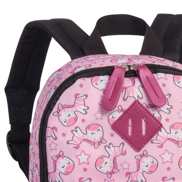 Gave rugzak van het merk Bestway. Op de tas zit een roze zebra print. De tas heeft een ruim hoofdcompartiment met ritssluiting, ook heeft de tas een voorvak met ritssluiting. In het hoofdvak zit een steekvak. Je kunt de tas dragen met de 2 verstelbare schouderbanden of met het handvat. Doordat de schouderbanden verstelbaar zijn kan je de tas altijd op de gewenste lengte dragen. De rug en de schouderbanden zijn gewatteerd, hierdoor draagt de tas zeer comfortabel.