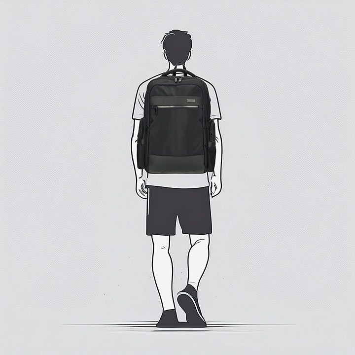 Het stevige handvat aan de bovenzijde zorgt ervoor dat je de tas gemakkelijk kunt oppakken of in de hand kunt dragen.Voor optimaal draagcomfort zijn het rugpand en de twee verstelbare schouderbanden gewatteerd.
