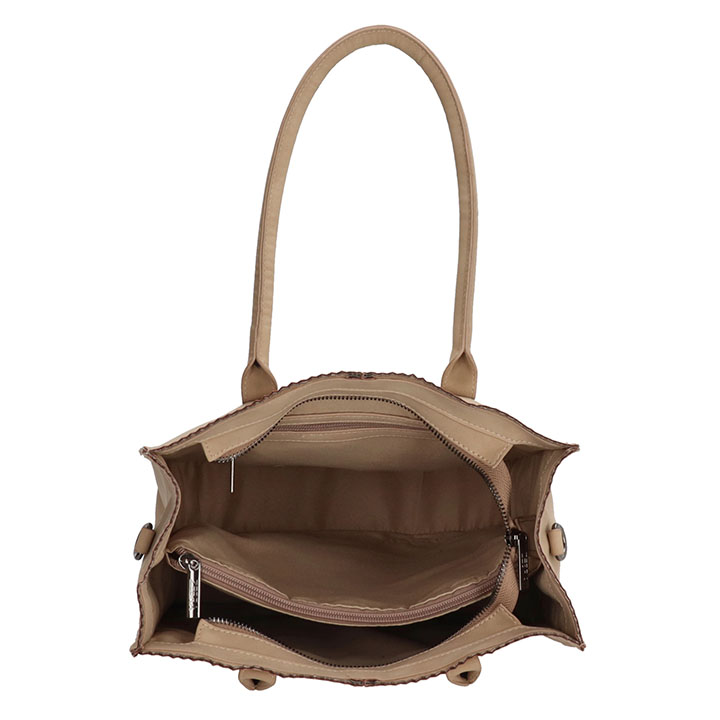 De Natural Bag Rosa is een prachtige dames shopper van Zebra Trends. De tas is gemaakt van mooi kunstleer, het kunstleer is zacht en heeft een super fijne feel. De tas beschikt over 2 handvatten waarmee de tas in de hand of over de schouder gedragen kan worden. Ook heeft de tas een lange schouderband die afneembaar en verstelbaar, doordat de schouderband verstelbaar is kunt u de tas altijd op de gewenste lengte dragen.