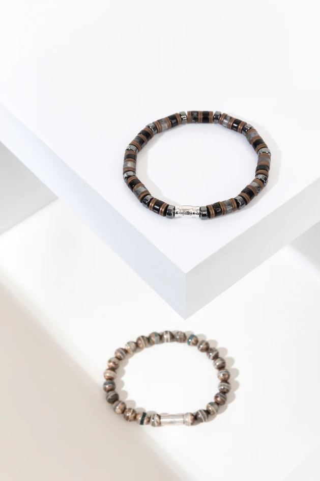 Stoere herenarmband van AZE Jewels. Deze halfedelstenen armband is gemaakt van platte 6 mm onyx, larvikite grijs en hematiet disc stenen met een echt zilveren 925 tussenstuk. De sterke elastische band houdt de armband goed bij elkaar en zorgt ervoor dat de armband comfortabel draagt. Ideaal om te combineren met verschillende (AZE Jewels) armbanden. Een medium armband heeft een lengte van 17.5 cm en een large armband heeft een lengte van 19 cm.