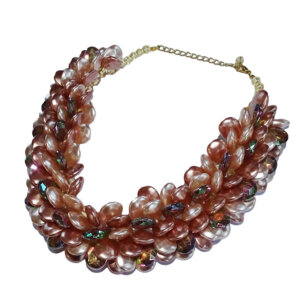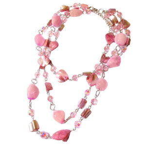 3 Laags Ketting met Steentjes en Schelpjes Roze