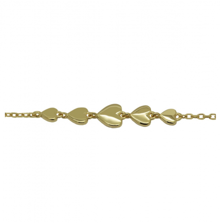 Mooie armband van Karma Jewelry met daaraan 5 hartjes in verschillende formaten. De armband heeft een lengte van 18.5 cm inclusief verlengkettinkje van 2 cm.