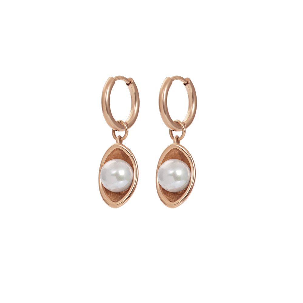 Mooie iXXXi oorringen met daaraan een hanger met daarin een parel. De oorringen hebben een diameter van 12 mm en de hanger een grootte van 17 mm. De oorbellen openen en sluiten gemakkelijk met een kliksluiting. Leuk om te combineren met de iXXXi Ketting Pearlite.