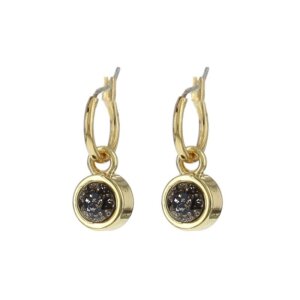 Biba Hang Oorbellen met Swarovski Steentje Jet Goud