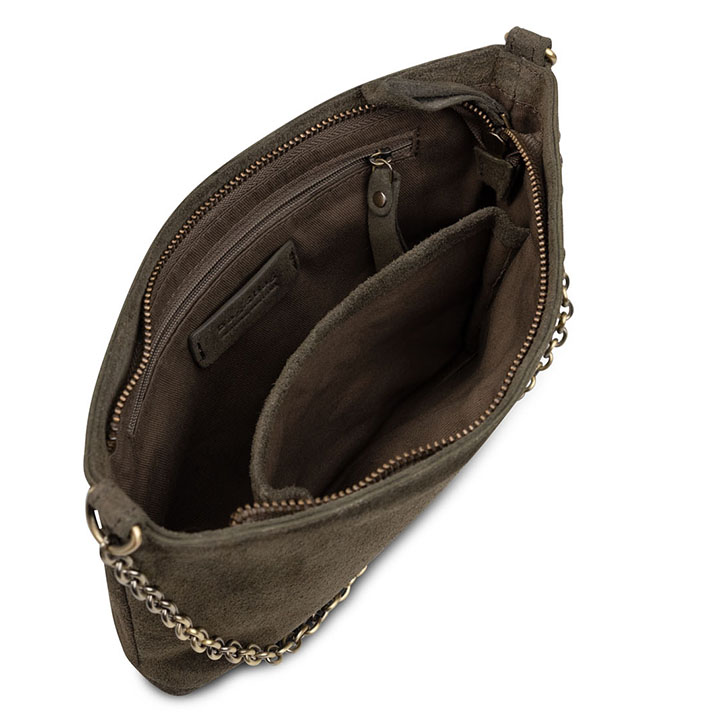 Wat de Vasto tas uniek maakt, is dat deze wordt geleverd met twee soorten schouderbanden: een korte leren afneembare chain schouderband voor het dragen kort over de schouder of in de hand, en een langere leren verstelbare schouderband voor extra draaggemak. Dankzij deze veelzijdigheid kun je altijd wisselen tussen verschillende stijlen en draagmogelijkheden. Aan de tas hangt tevens een afneembare suede kwastje, wat de tas een unieke en trendy uitstraling geeft.
