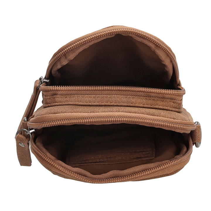 De tas heeft een hoofdvak met ritssluiting, intern heeft de tas 3 creditcardvakjes. Ook heeft de tas een voor- en achtervak met ritssluiting. Met dit tasje ben je helemaal klaar voor het festivalseizoen, ook is het tasje ideaal voor een avondje uit. De afmetingen van de tas zijn 14 x 19 x 5 cm.