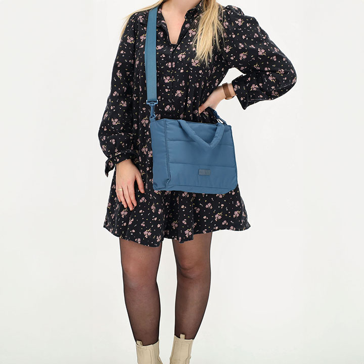 Beagles Puffer Handtas/Schoudertas Calvia Jeansblauw