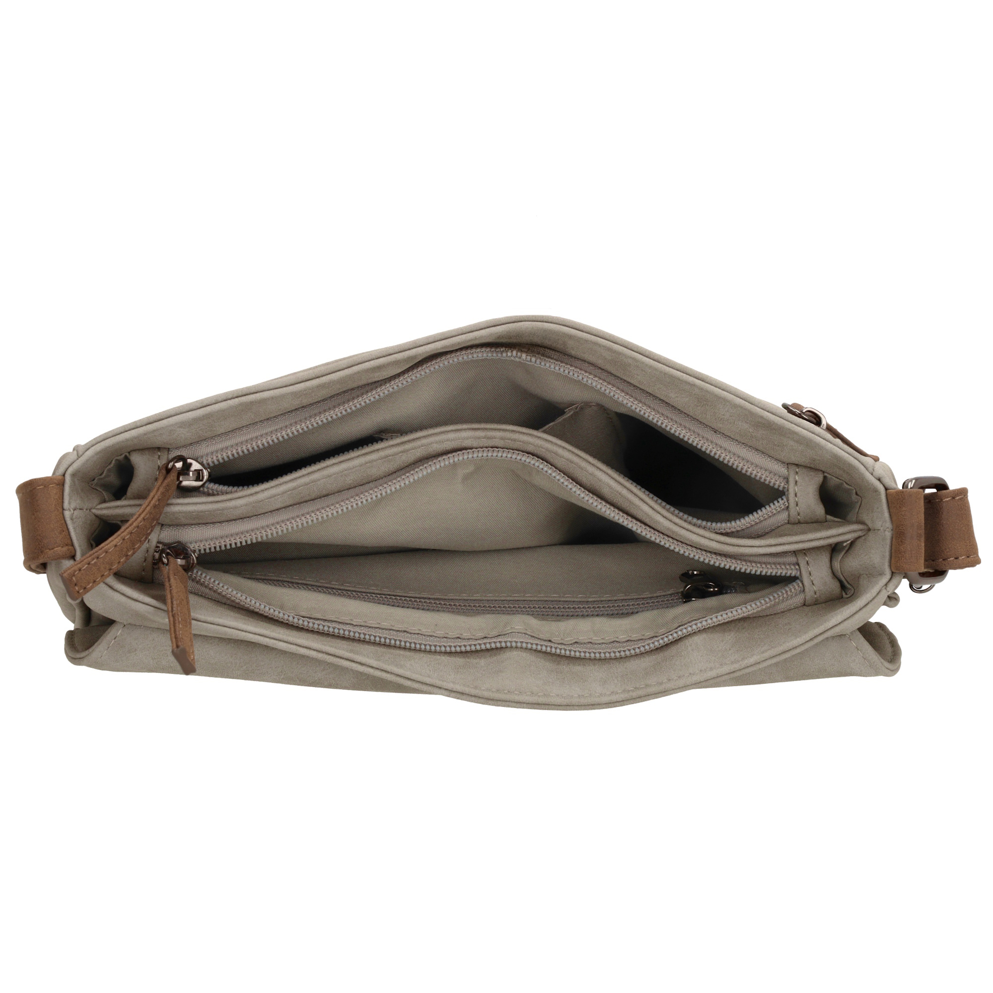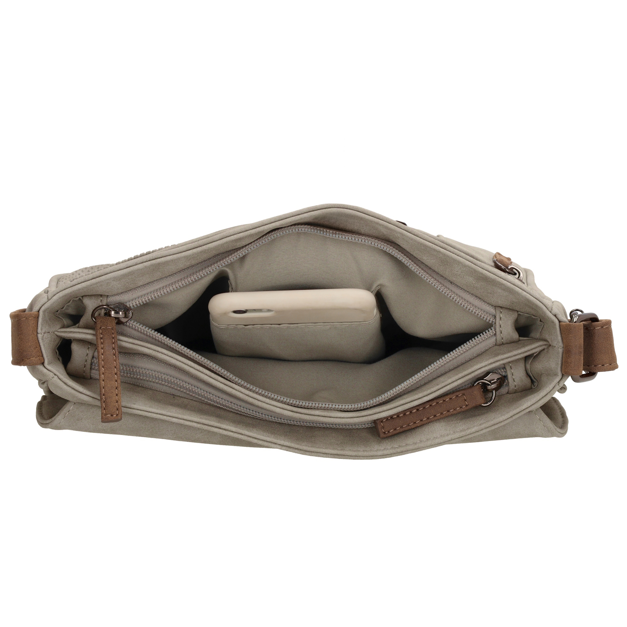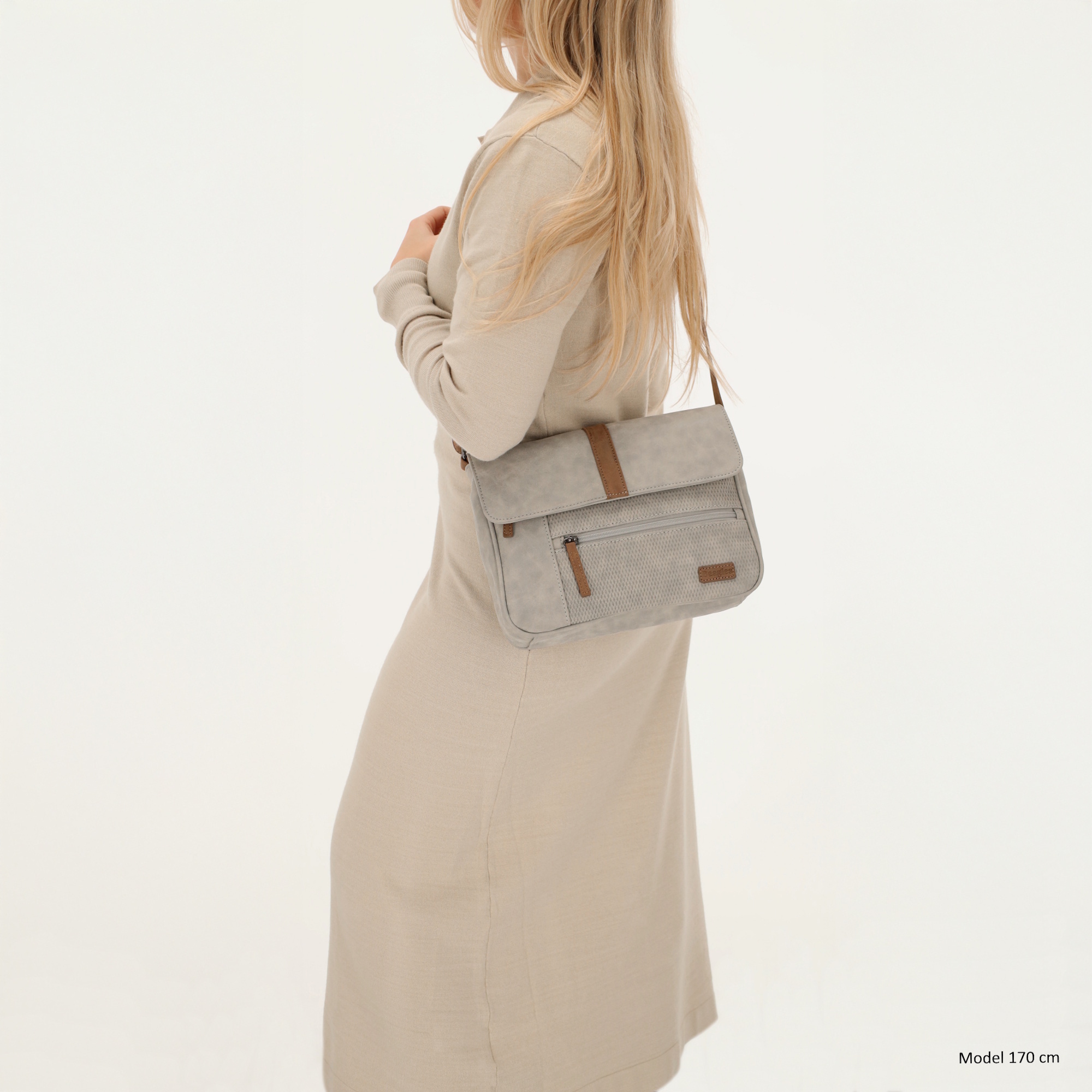 De tas heeft twee hoofdvakken met ritssluiting en een voorvak, die samen worden afgesloten met een overslag met druksluiting. Intern heeft de tas een steekvak, ritsvak en een telefoonvak. Ook heeft de tas een twee voorvakken en een achtervak met ritssluiting. Door de vele vakken kunt u uw spullen goed gescheiden houden. De afmetingen van de tas zijn 27 x 20 x 6.5 cm.