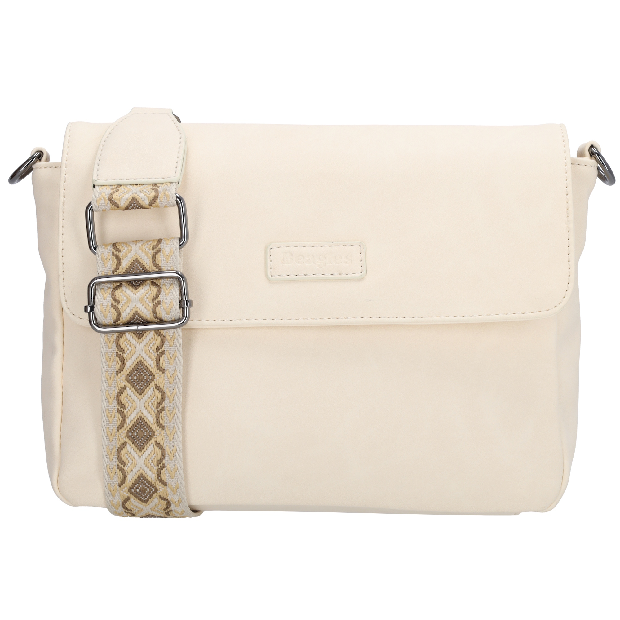 Super leuke schoudertas met overslag uit de Malaga serie van Beagles. De tas is gemaakt van mooi kunstleer, het kunstleer is zacht en heeft een super fijne feel. De tas beschikt over een lange afneembare schouderband die verstelbaar is, doordat de schouderband verstelbaar is kunt u de tas altijd op de gewenste lengte dragen. De schouderband heeft een print wat de tas een gezellige uitstraling geeft.