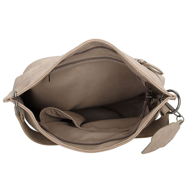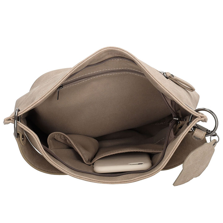 Op de bovenzijde heeft de tas een ruim hoofdvak met ritssluiting, intern heeft de tas een steekvak, ritsvak en een telefoonvak. Ook heeft de tas een achtervak met ritssluiting. Door de meerdere vakken kunt u uw spullen goed gescheiden houden. De afmetingen van de tas zijn 34 x 26 x 13 cm.