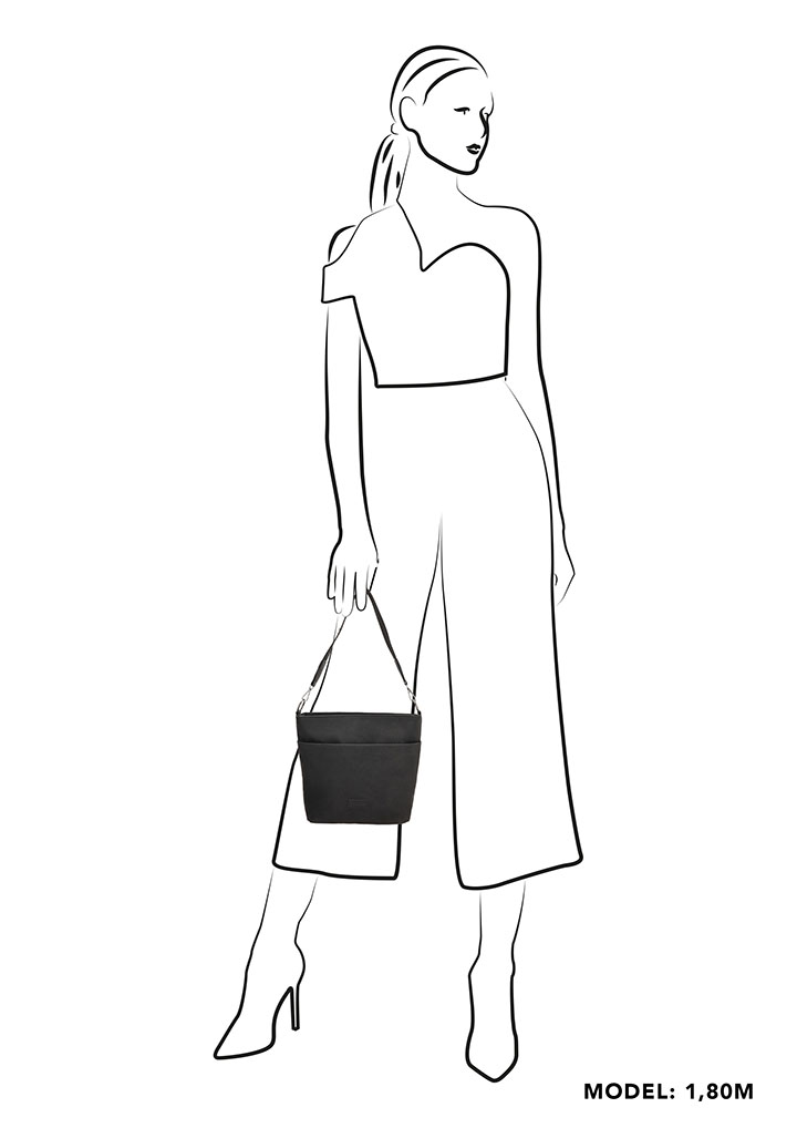 De tas heeft een hoofdvak met ritssluiting, intern heeft de tas een binnenvak met ritssluiting, een steekvak en een verdeler met ritssluiting. Ook heeft de tas een voor- en achtervak met ritssluiting. De afmetingen van de tas zijn 32.5 x 25 x 12 cm.