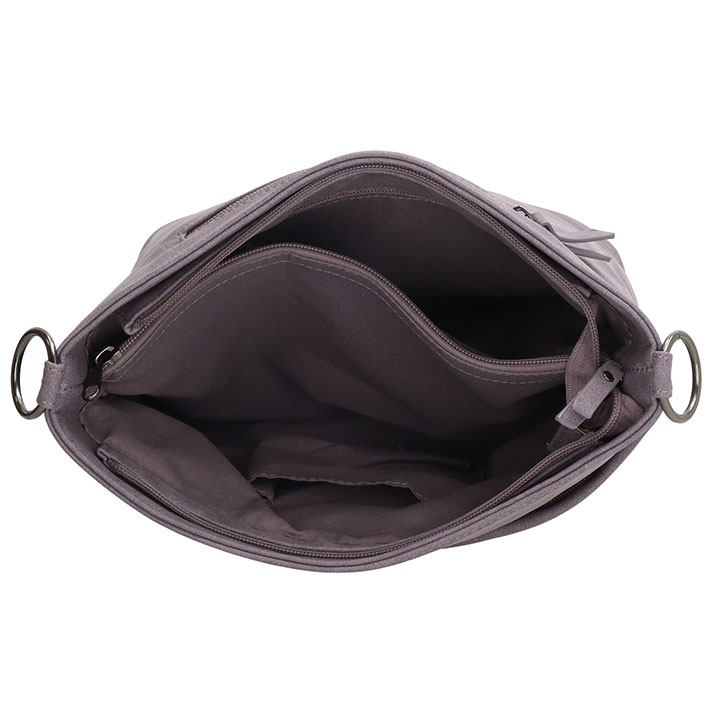 De tas heeft een hoofdvak met ritssluiting, intern heeft de tas een binnenvak met ritssluiting, een steekvak en een verdeler met ritssluiting. Ook heeft de tas een voor- en achtervak met ritssluiting. De afmetingen van de tas zijn 32.5 x 25 x 12 cm.