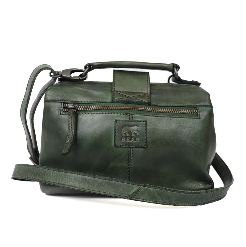 De tas kunt u dragen met het handvat of met de schouderband. De schouderband van de tas is afneembaar en verstelbaar, hierdoor kunt u de schouderband altijd op de gewenste lengte dragen. Het Bear Design logo is mooi verwerkt in het leer. Met deze Bear Design tas heeft u een bijzondere tas. Het formaat van de tas is 23 x 16 x 9.5 cm.